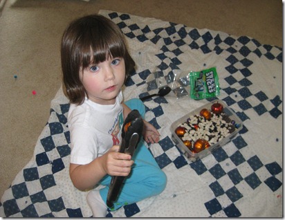 While we did get out of the house each day to do our normal weekly errands like grocery shopping and a trip to the library, there was a lot of time to fill up. Thankfully, I have been thinking about new activities to do with Julia and have recently been inspired by many posts on a website called Pinterest (a very cool and addictive site). So we made a trip to the store early this week to stock up on some new craft supplies and we were set.
